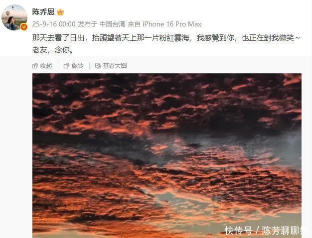 9月16日,是喬任梁離世的日子,到今年已經(jīng)九年了。陳喬恩像往常一樣,曬出了粉紅云海的照片,配文說(shuō):“那天去看了日出,抬頭望著天上那一片粉紅云海,我感覺(jué)到你,也正在對(duì)我微笑~老友,念你?!焙?jiǎn)簡(jiǎn)單單的話語(yǔ),卻飽含著無(wú)盡的思念。
