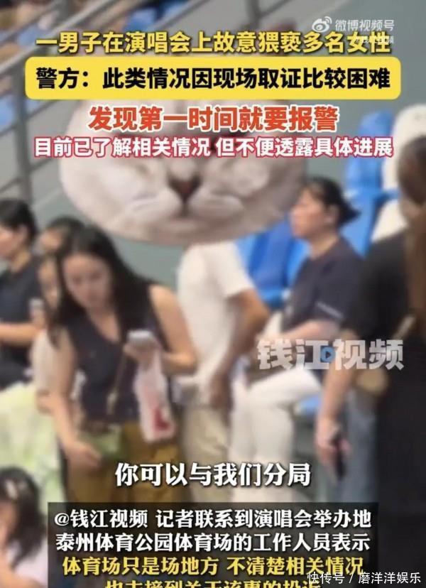 更让人觉得气愤的是,这男的明明知道演唱会人多眼杂,还敢这么做,明显是存着侥幸心理。他大概觉得:就算女生发现了,也不好意思当场发作;就算有人看到了,也不一定会录视频;就算录了视频,也不一定能找到他。可他没想到,现在网友这么给力,视频一曝光,全网都在找他,当地警方也很快就注意到了这事儿。有记者联系泰州当地派出所,工作人员说已经接到群众举报了,正在调查情况,还特意提醒大家:“遇到这种事千万别忍,一定要第一时间报警,最好能留好证据,比如视频、录音,或者找现场的人作证,事后再找证据就难多了?!?#36825话真的很实在,之前就有女生因为当时没敢报警,后来想找证据却啥都没有,最后只能吃哑巴亏。