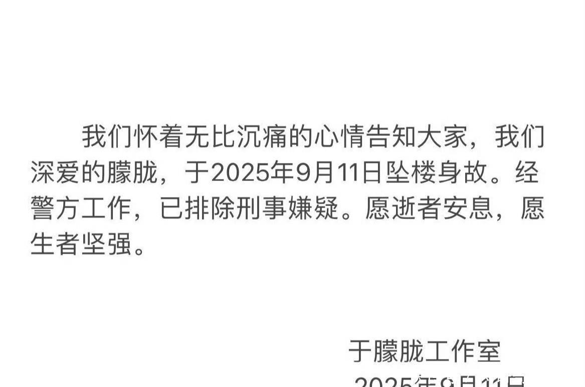 9日,娱乐圈传来噩耗,于朦胧工作室正式确认,知名演员于朦胧在北京坠楼身亡,年岁。这一消息迅速登上热搜榜首,引发全网震惊。