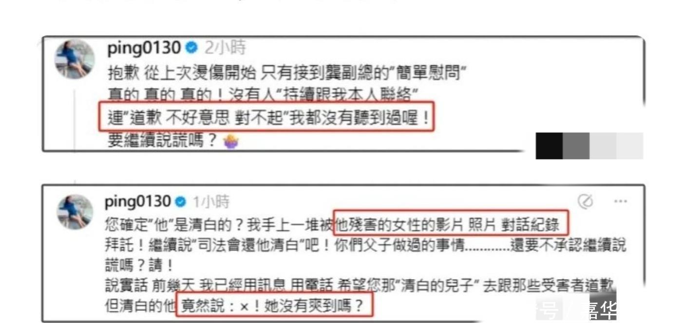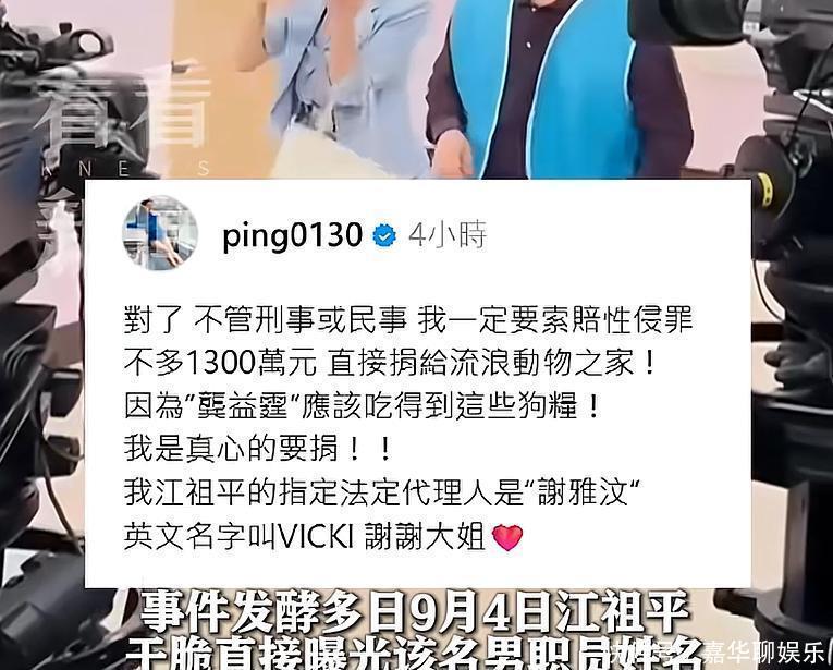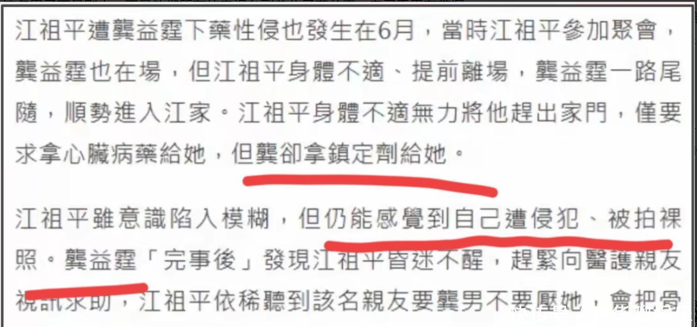 江祖平在社交平臺(tái)上點(diǎn)名:自己被電視臺(tái)高層的兒子龔益霆下藥x侵,甚至還被偷拍裸照。她不止一次在公開場(chǎng)合強(qiáng)調(diào),這不是“鬧分手”的情緒,而是赤裸裸的犯罪行為。為了證明清白,不管刑事或民事,她愿意用1300萬賠償金捐給流浪狗之家,還說自己手上握有大量證據(jù)。