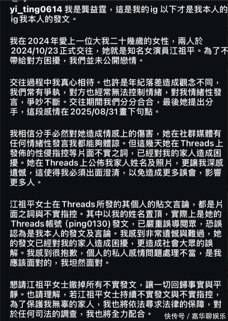 在對(duì)比之下,男方的回應(yīng)就顯得蒼白,幾乎沒有拿出任何證據(jù),只是強(qiáng)調(diào)沒有的事。娛樂圈的病,不在個(gè)體其實(shí),這件事不只是江祖平和龔益霆的私人恩怨,它再次撕開了娛樂圈的黑幕,飯局、權(quán)力、潛規(guī)則。尤其是在臺(tái)灣娛樂圈,這幾年接二連三曝出類似事件。