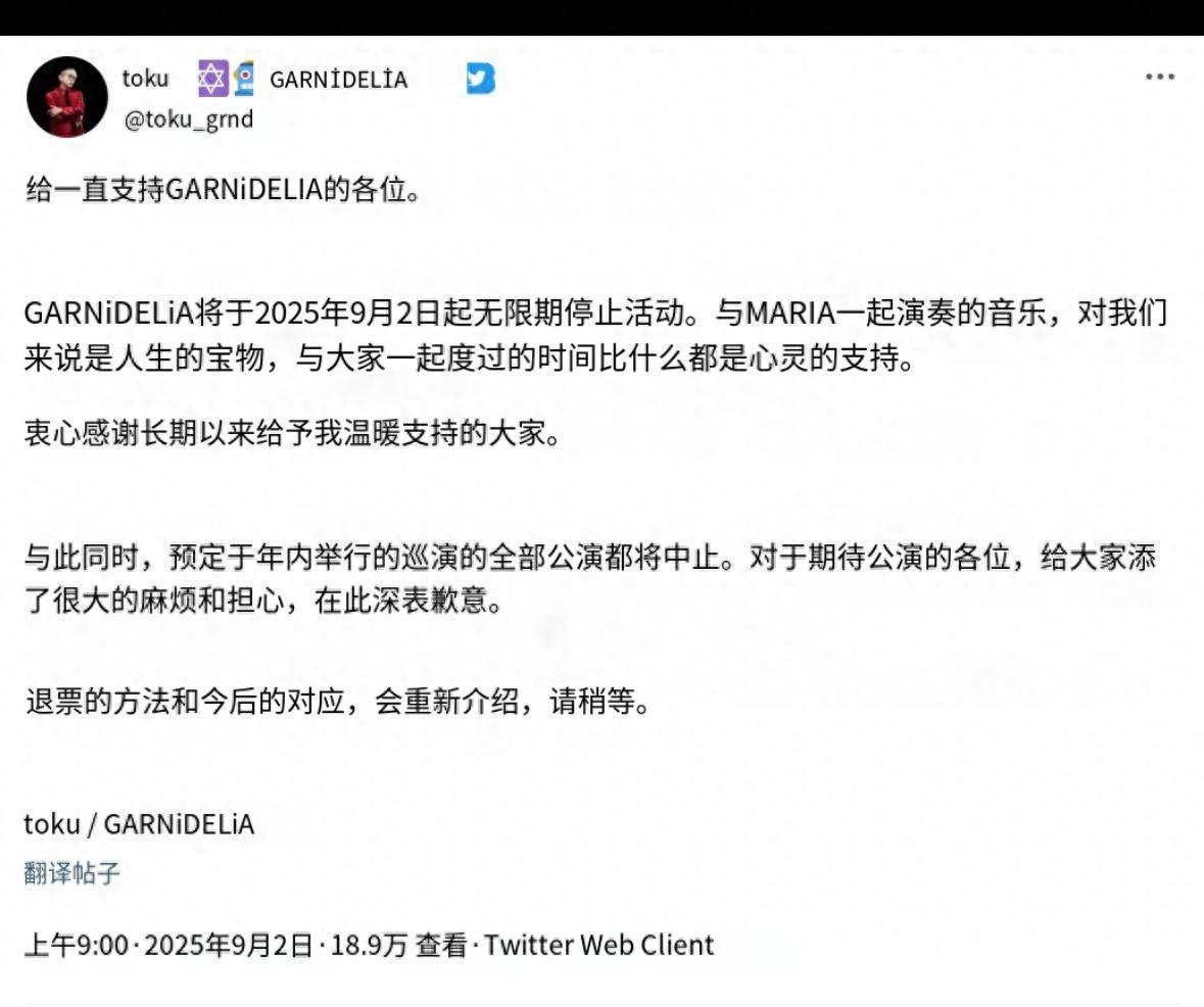 前几天有个新闻,直接震惊了整个东大阿宅圈,那就是“GARNiDELiA无期限停止活动!”。是的,你没看错,就是莫名其妙在特酷(toku)的个人X上直接发表了,连美依礼芽(MARiA)都不清楚发生了什么……
