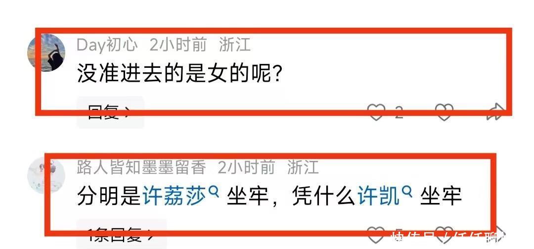 許荔莎怒錘許凱聚眾DB,并以“讓你道歉你不道,如今我倆有一個(gè)要進(jìn)去了。”艾特許凱,一石激起千層浪。