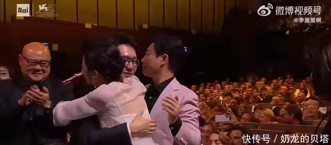 獲獎(jiǎng)現(xiàn)場(chǎng)真情流露。擔(dān)任評(píng)委的趙濤第一時(shí)間送上擁抱,更貼心為她手舉獎(jiǎng)杯;好友馮紹峰、張頌文激動(dòng)鼓掌,三人緊緊相擁,場(chǎng)面感人。