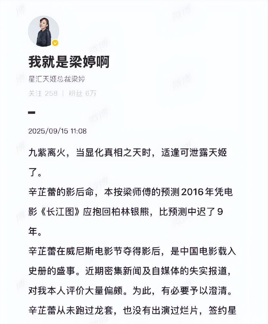 江湖兒女江湖見,相逢一笑泯恩仇,本來這是非常動人的畫面。偏偏娛樂圈內(nèi)各種關(guān)系盤根錯節(jié),而且動輒就與名利相關(guān),很多事情并不像我們表面看到的那么單純。經(jīng)過小編略一查詢,竟發(fā)現(xiàn),剛剛與辛芷蕾上演世紀大和解的前經(jīng)紀人梁婷,真的不是一個簡單人物。