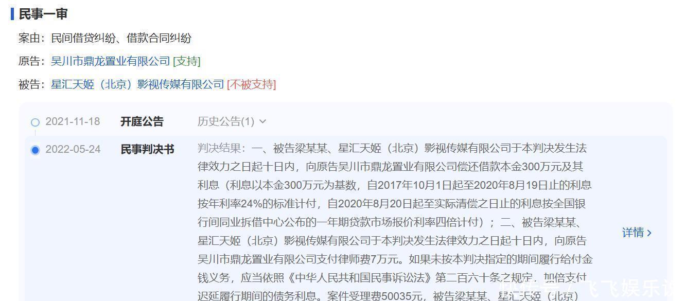2022年5月,梁婷陷入一則民間借貸糾紛、借款合同糾紛,大體是梁婷向人借了300萬,到期本金利息都沒還,被判決后仍不還款,乃至于2023年6月又被告了。