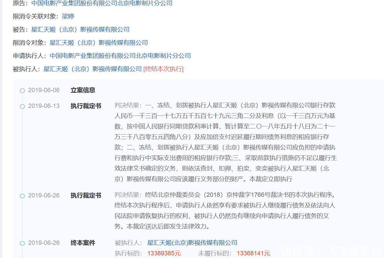 2019年6月,梁婷被執(zhí)行13389385元,未履行13368141元,已履行21244元。