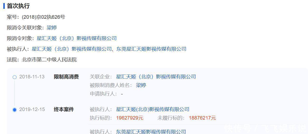 2018年12月,梁婷被執(zhí)行14291643元,未履行14291643元,同樣是一分錢都沒履行。