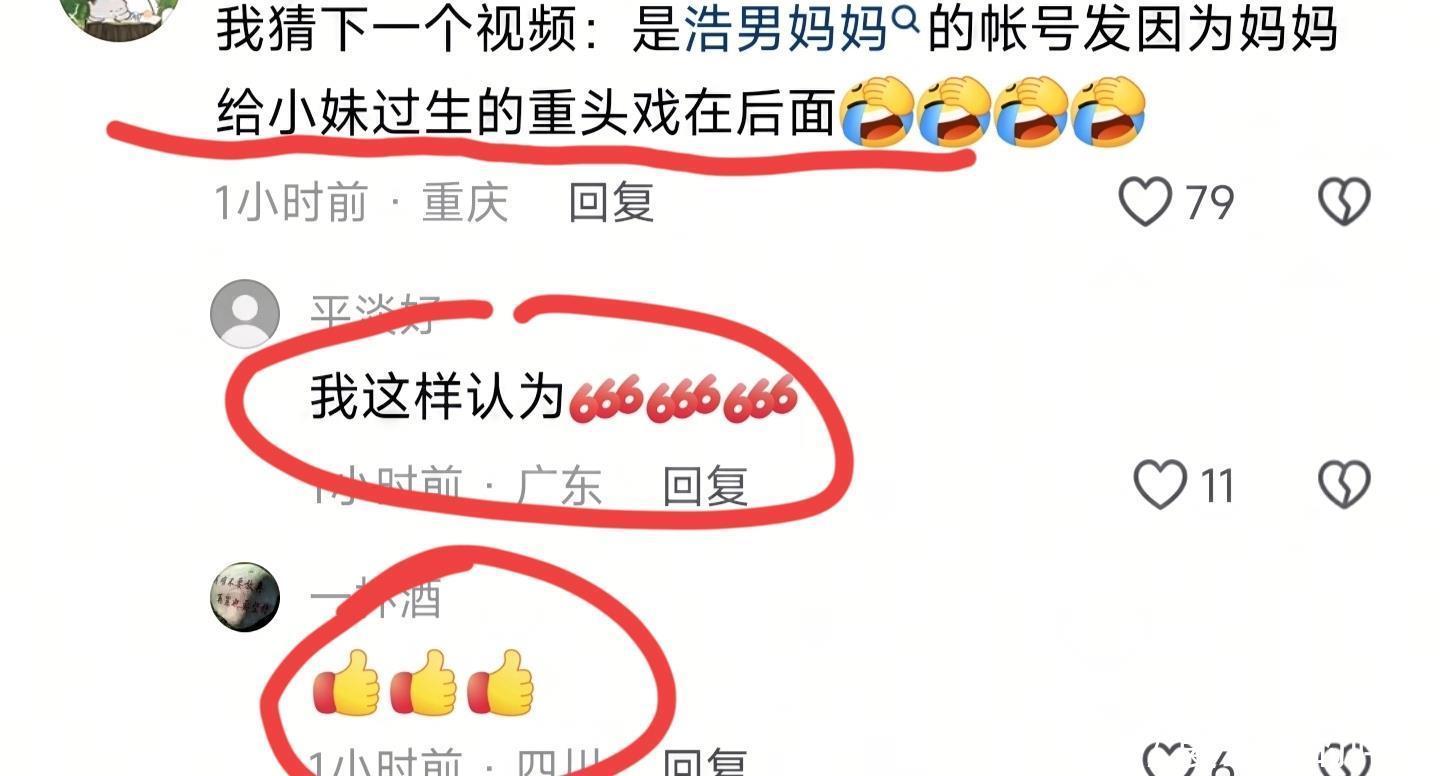 后來浩男大妹看到網(wǎng)友們在留言區(qū)對這件事談?wù)摰娜思ち?,她便在留言區(qū)回復(fù)了大家,這個問題其實昨天是給小妹補過的生日,小妹生日那天正好她不放假,所以等到周末給她補過一下 所以大家不用糾結(jié)這件事了