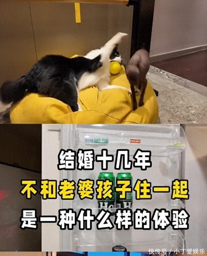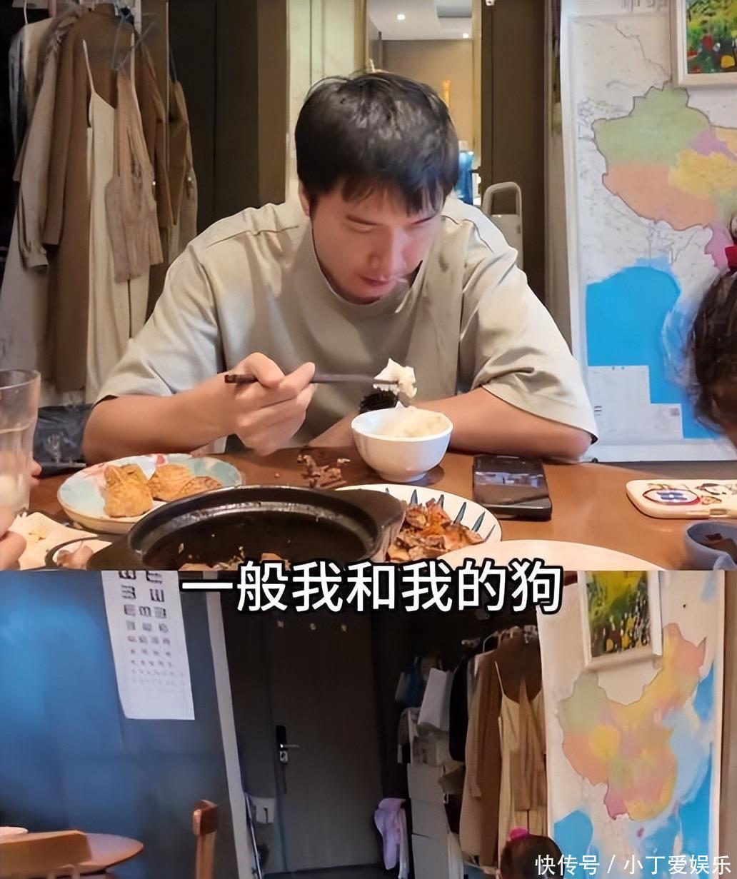 但你看人家两口子,么么哒摸脸杀一样不少,每天晚上还准时跑去老婆家吃饭收手机。 两条狗一人认领一只,连生活费都要被老婆调侃“一块”。
