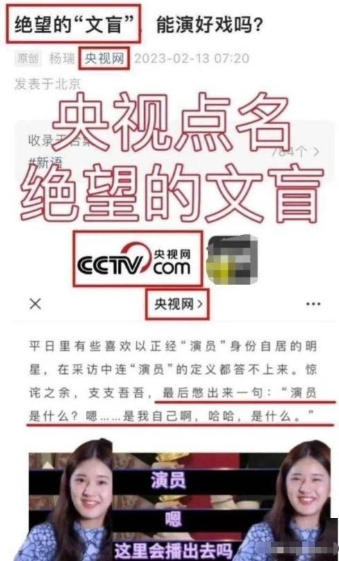 她也曾被央視點(diǎn)名批評(píng)屬于“絕望的文盲”。一次采訪中,當(dāng)被問及“演員的定義”時(shí),她竟無言以對,鬧出不小笑話。