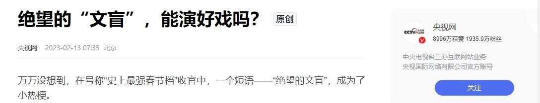 央媒也多次對“絕望的文盲”現(xiàn)象提出批評(píng),前年更專門刊發(fā)文章《“絕望的文盲”,能演好戲嗎?》,直接點(diǎn)出某些頂流藝人的名字。