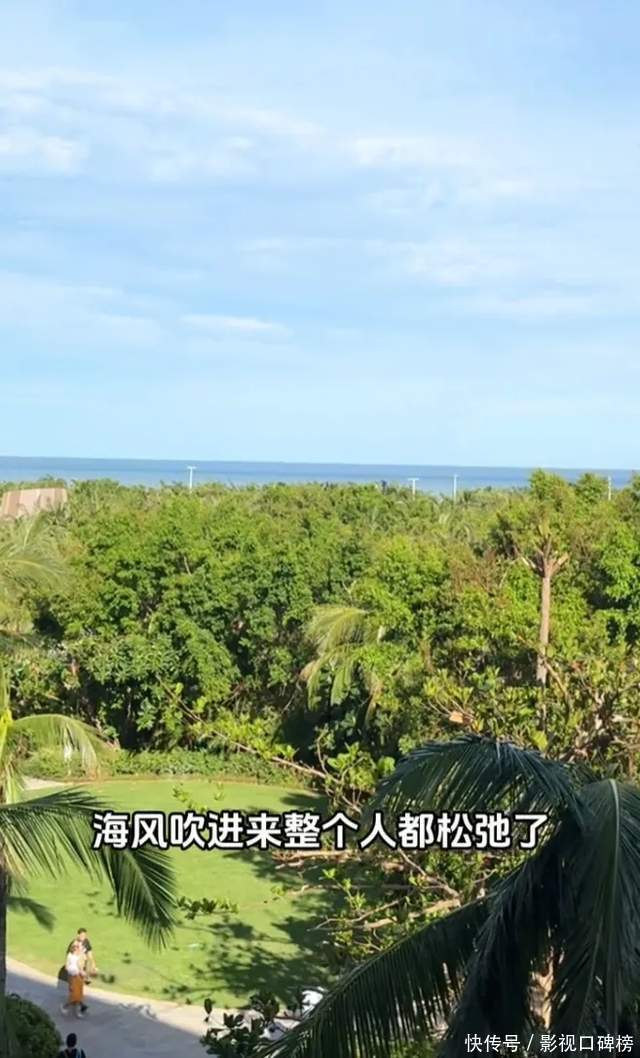 伊能静在视频里也介绍了他们在三亚入住的海景房,窗外是一片蔚蓝的大海,有很多绿植环绕,环境超级棒。