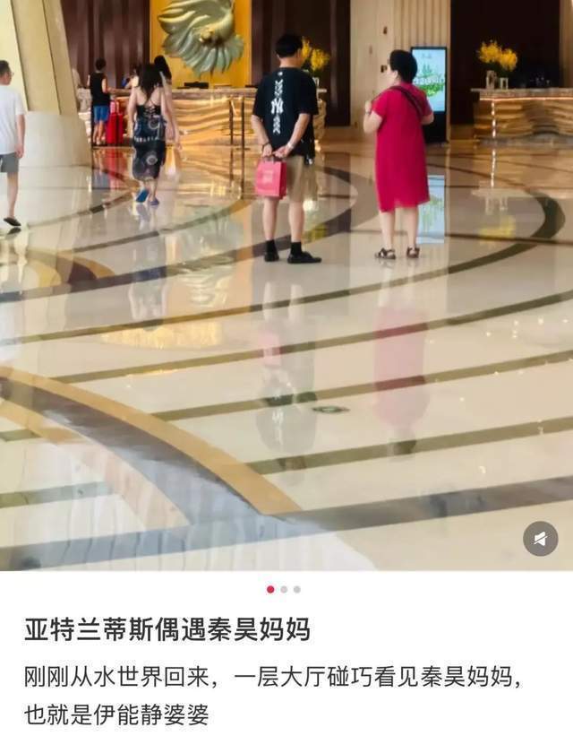 伊能静一家四口入住的酒店名叫亚特兰蒂斯,有网友晒出在酒店大堂偶遇秦昊妈妈。这位老人家穿着红色衣服,依旧将头发梳得整齐,很慈祥。