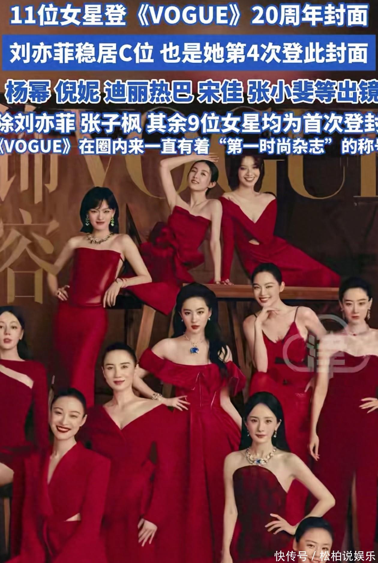 2025年9月5日,《服飾與美容VOGUE》為慶祝創(chuàng)刊二十周年推出的女星群像封面震撼登場(chǎng)。這張封面集結(jié)李庚希、文淇等11位風(fēng)格各異的女演員,其中劉亦菲第四次榮登封面且位居C位,成為焦點(diǎn)所在,盡顯時(shí)尚與優(yōu)雅的雙重魅力。