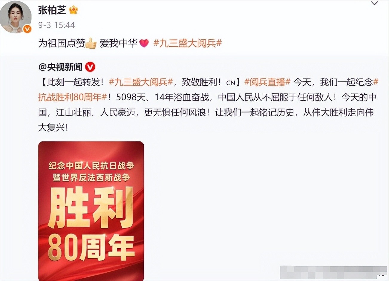 但在阅兵当天,她在个人社交账号上发表了简短的文字,表达了对祖国的热爱。正是这条社交动态使她的声誉迅速上升,从"丑闻女王"转变为最具态度的港星。